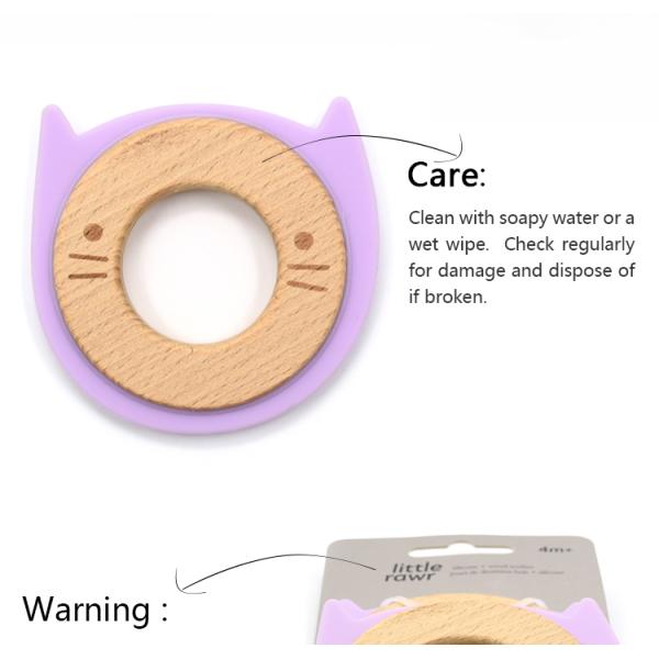 Sensory Cat Shaped Wooden Silicone Ring LFGB Chew Toys For Teething Babies
