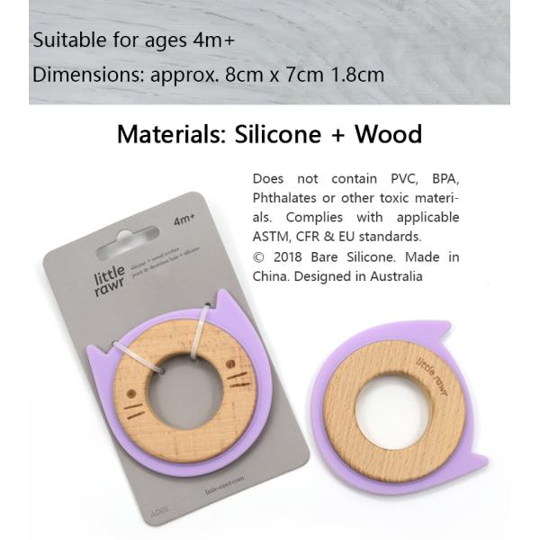 Sensory Cat Shaped Wooden Silicone Ring LFGB Chew Toys For Teething Babies Images |