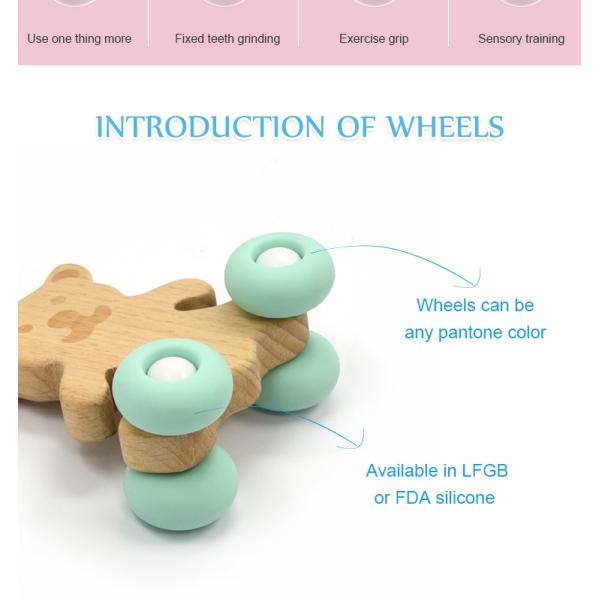 Wooden Kids Nursing Toy FDA Silicone pantone Color Teething Rattle Toy