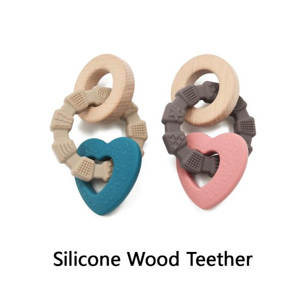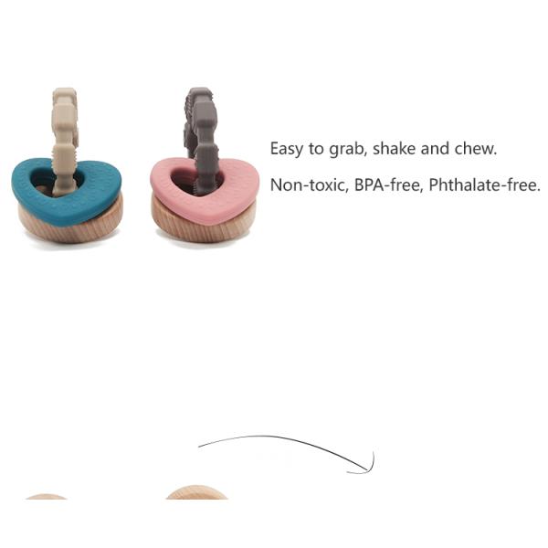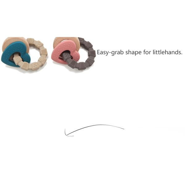 Anti-bacteria easy to grab shake and chew round wood silicone teether